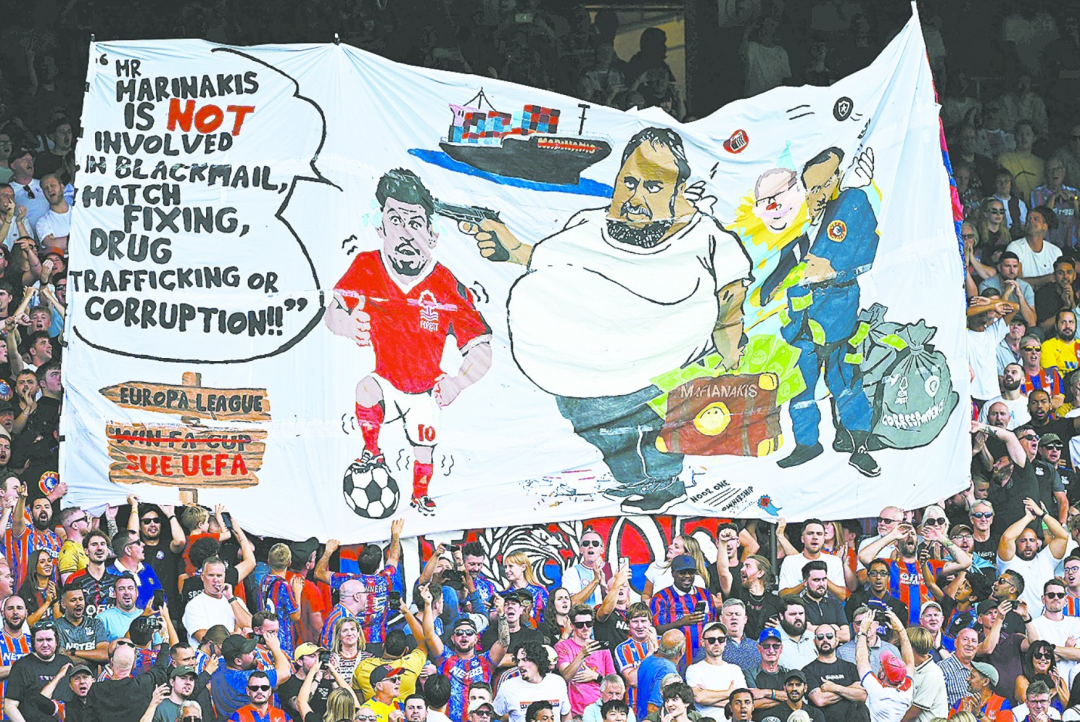 这一系列背景为诺丁汉森林客场造访水晶宫的比赛埋下了导火索,外界也在赛前预计本场比赛“氛围会非常火爆”。尽管马里纳基斯本人并没有亲临现场观战,但水晶宫球迷仍通过横幅表达情绪。